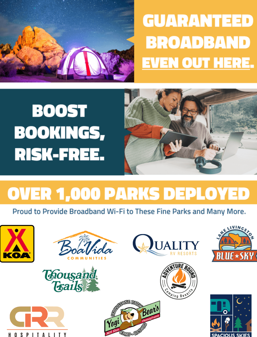Bring Fast, Reliable Broadband Internet to Your Guests and Boost Your Park’s Appeal with No Up Front Costs.