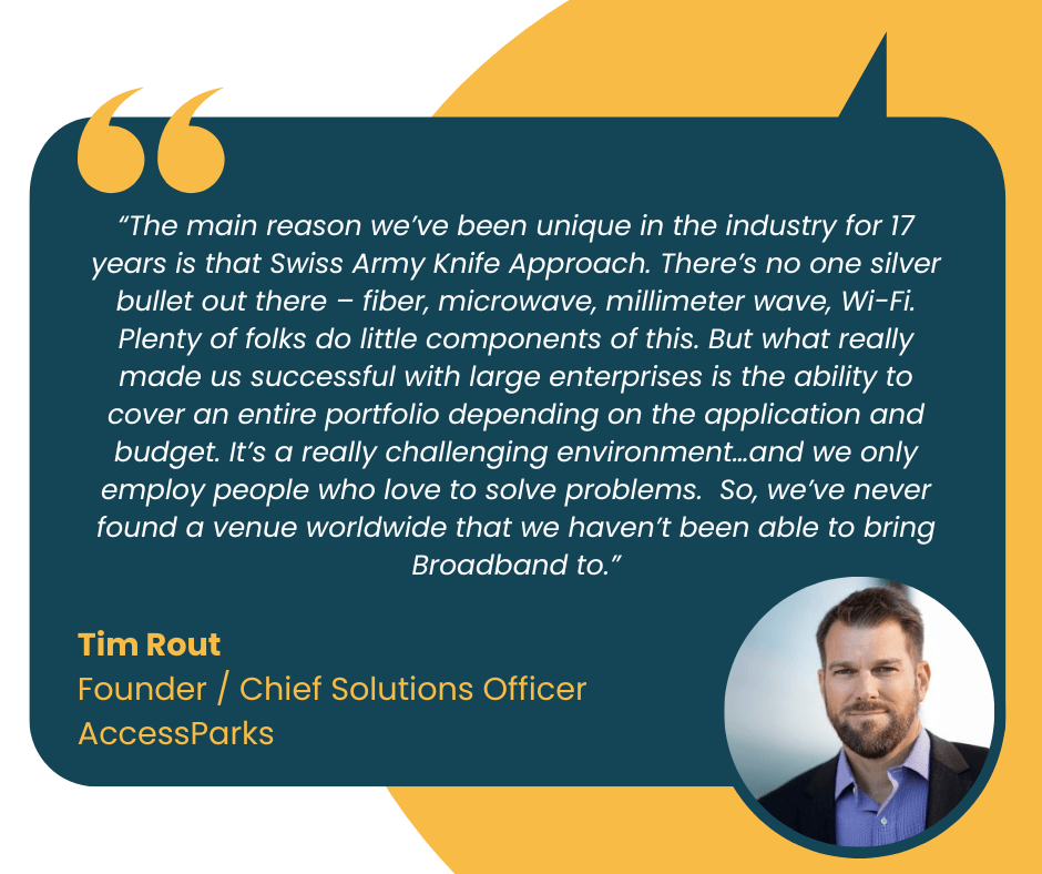 Simply put, AccessParks Provides Fast, Reliable Broadband Internet with End-to-End Service and Support to Places You Need it Most – Your Parks and Communities.